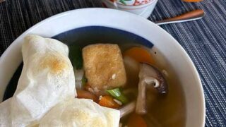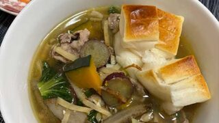 昼食 餅入り豚汁 お昼は豚汁をたっぷり作り、餅を焼いて入れました。これを我が家のお雑煮とする方向となりました。『相葉マナブ』の生姜の回で紹介されていた、生姜をたっぷり使... 2026.01.02 昼食