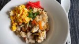 椎茸はスライスして軽くレンジで火を通し、