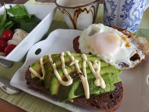 アボカドを乗せたのと、ベーコンエッグを乗せたもの。