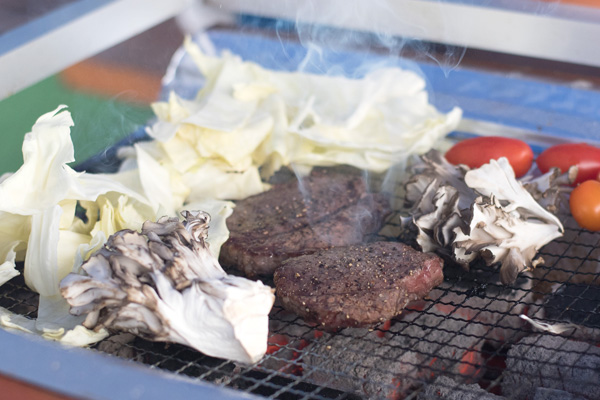 火力が想像よりすごいとわかりましたが、さすがにジャガイモとか玉ねぎは時間かかるよね…とこのあと一斉に焼き始めました。