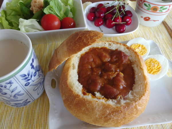 カトレアはカレーパンの発祥として有名なお店ですが、お邪魔したタイミングでは買えなかったのでブールをくり抜き、カレーを入れて勝手にカレーパンとしました。