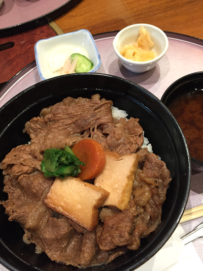 迷いに迷って、百年牛丼にしました。1,500円くらいだったかな。もうお肉の美味しさにうっとり。味付けも程よい上品な甘辛さ。