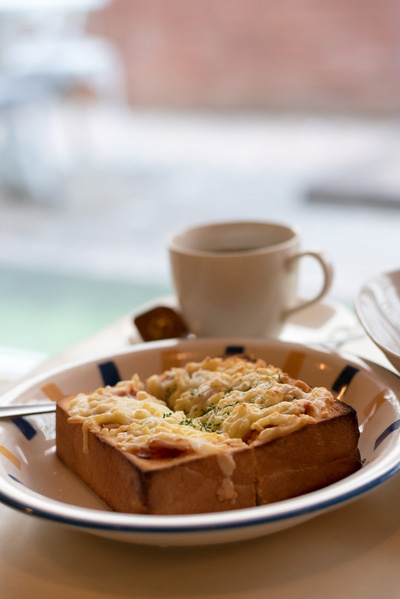 私はピザトースト520円。分厚いパンは耳も柔らかいのですが、チーズがこんがりするまで焼かれていてとてもおいしかったです。