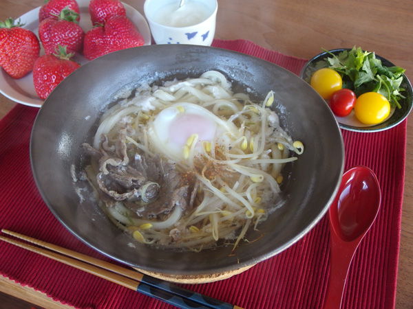 特に冬は辻麺のうどんで朝は温まります。これは先月の朝食ですが、3月に入ってもまだ寒い朝はあるし、幸いまだ冷凍庫にたくさんあるのでしばらく楽しめます。結婚して知った播州播磨の辻麺のうどんは、手軽に関西のうどんを味わえる救世主でもあります。夫の祖母から、きつねうどん、肉うどん、大関の3大スターが送られてくると私は嬉しくてたまりません。