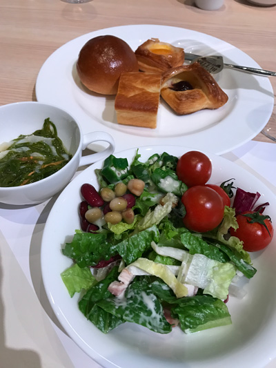 品数が本当にたくさんあり、私が少々アレルギーがあって食べられないものが1~2割あっても全然淋しくないです。食べきれなかった中にはお稲荷さんもおいしそうでしたし、カレーも麻婆豆腐も良さげでしたがまったく手が出せないほどの満腹になり食事の部が終わりました。バラエティに富んでいて全然飽きないラインナップです。1回では何もかもは無理ですね。日替わりのものもあるでしょうし、また行きたい気持ちにさせてくれます。