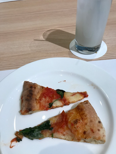 パンも全うしたので、3種類あったピッツアのうち2種類…菜の花とサラミ、マルゲリータをいただきました。
