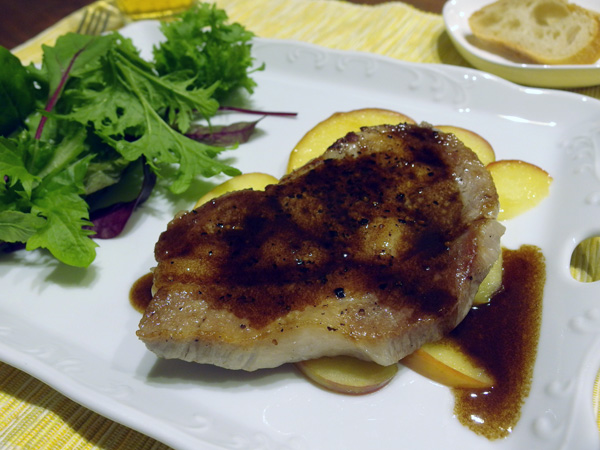 バルサミコ酢で作ったソースとりんごとの組み合わせ、飲み物ともマリアージュが効いていましたよ。普段私はこんなにちゃんとしてないのに恐縮ですが、ありがたく楽しみました。アレルギーのことも気にせず食べられるのでストレスもありません。