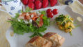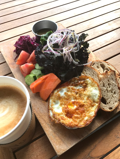 目玉焼きは基本は半熟だけど、両面焼きもリクエストできました。サラダは想像以上にたっぷりとした量でドレッシングにはキヌア入り。