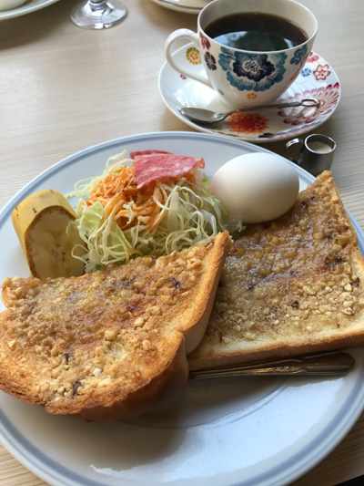 モーニングをする機会があり、私はこの辺りでしか食べられないアーモンドトーストを。