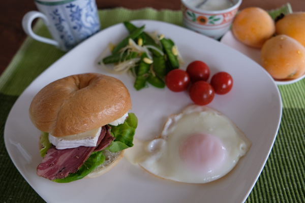 自家製のくるみベーグルでのサンドウィッチ。
