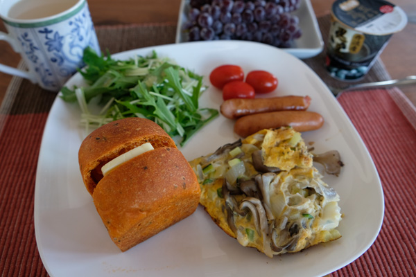 トマトブレッドにちょいとチーズを挟んでの朝ごはん。
