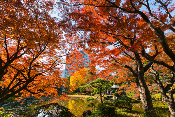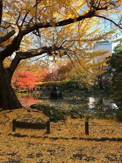 日比谷公園よりも紅葉はかなり終わりに近づいていて、染井門から入ったあたりの方が見ごろでした。