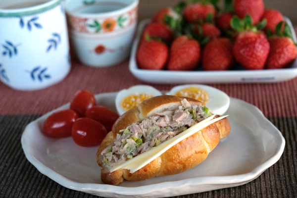 ロールパンを久々に焼いたので、ツナやセロリ、チーズのサンドウィッチにしてみました。