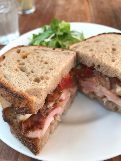 30分ほどで席につき、ローストポークのサンドイッチを湘南小麦のカンパーニュで、飲み物はラテマッキャートでお願いしました。1,140円。