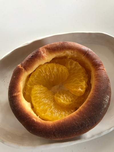甘夏のブリオッシュ、フルーツもジューシーで下にカスタードクリームが敷かれているのもよいですねえ。