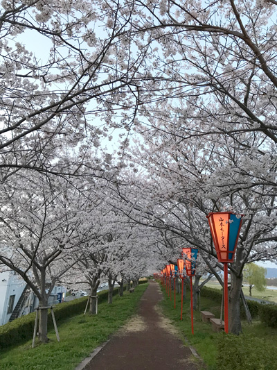 昼食後、用事が終わり、夕方の揖保川沿いの桜並木を散策。