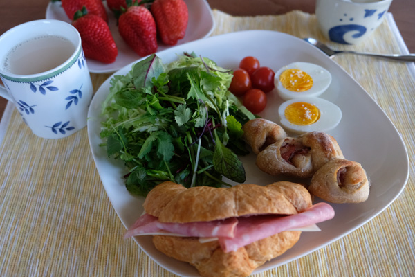 2ヶ月前の3月の朝食。3、4月はなんだかあまり更新しなかったなあ。このパンは夫が買ってきてくれたもの。