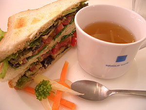 今日のサンドウィッチは、ナスとトマトとツナ。