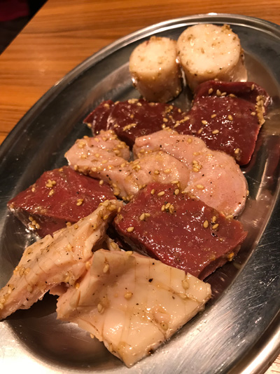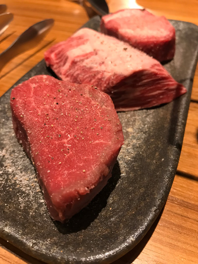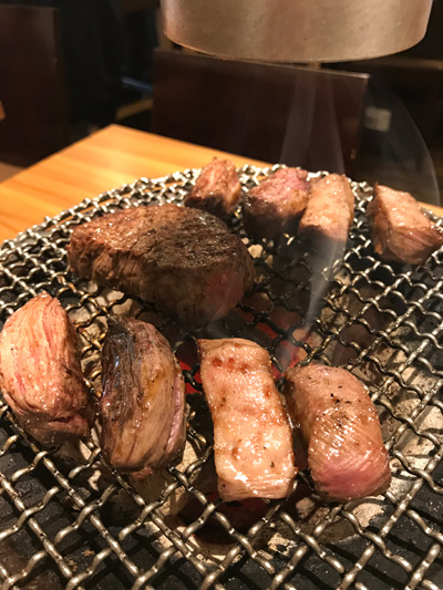 名物のぶ厚い3兄弟(タン・ハラミ・ヒレ)が冒頭の写真でして、お店の人が焼いてくれます。