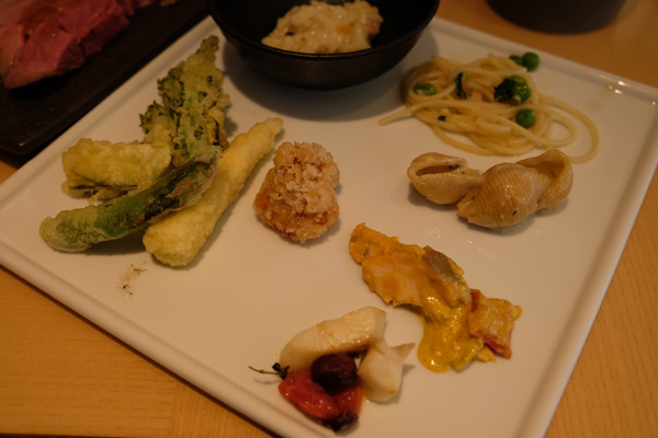 コンキリエのポルチーニ茸ソースのがダントツに美味しかったです。天ぷらというかフリッターも軽くてサクサクしてるのもよかったなあ。
