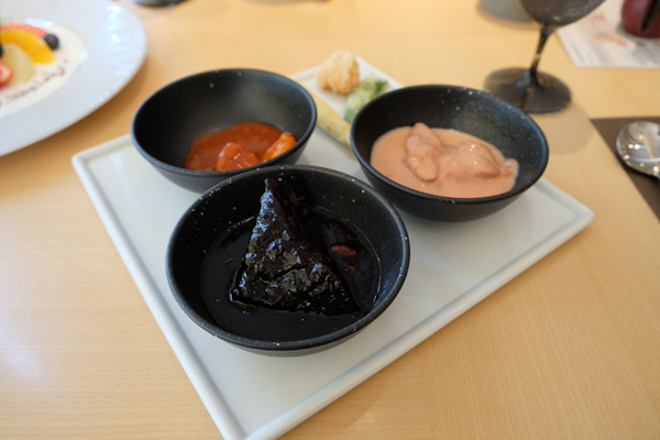 ムール貝の何かやエビのグリルなども温かいお料理のところにはあり、そちらは夫が楽しんでいました。