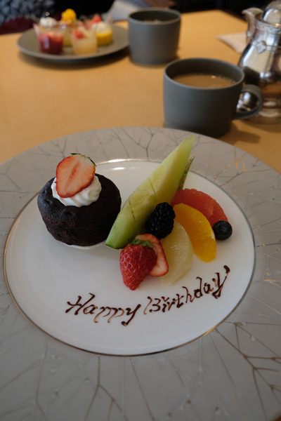 驚いたのは、「お誕生日だとお伺いしまして」とバースデープレートが用意されたこと。