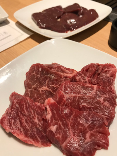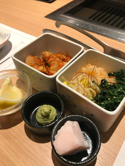 ここのお肉はタレに漬けこまれていないので、好きに味付けができるのがいいですねえ。塩がいい時もあるし、わさび醤油にしたいときもあるし、タレが断然合うのもあるし。