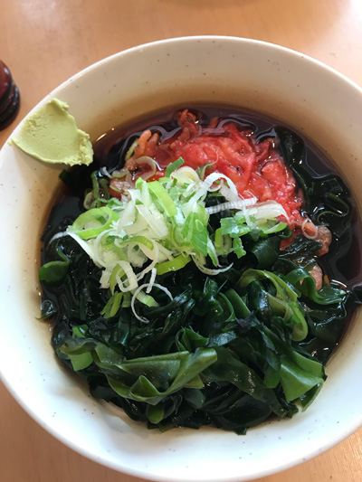 私は初回に頼んだものを同じ、ショウガ天とわかめ。わかめはもともと入っているのですが、あえての増量です。