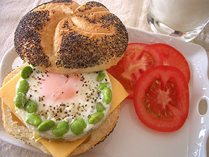 セルクル型で目玉焼きを作る時に、枝豆を周りに配しました。