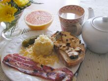 朝ごはんのほかのラインナップは、塊ベーコンを厚めにスライスして焼いたもの。