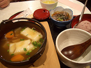 にんじんやだいこん、ごぼう、里芋、鶏肉、そしてお餅が入り、