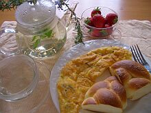 オムレツは、ローズマリーをオリーブオイルでじっくり温めた後、