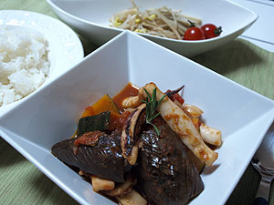 イカのスパイシートマト煮込み