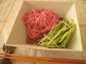 そうめんやつゆに梅風味が混ぜてあるのですが、