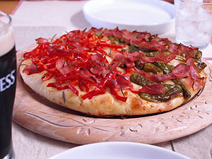 そんな訳で、今回は、チーズをたっぷり練りこんだ、ししとうと赤ピーマンのパンピザと