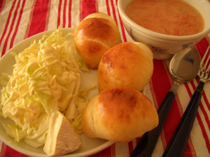 ドライハーブやロールパンで余った溶き卵、パルメザンチーズなどで味付け、
