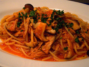 夫は、ツナときのこのトマトソース。