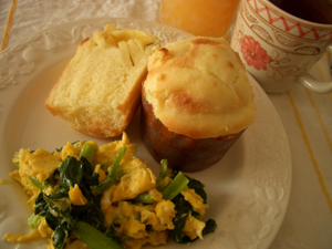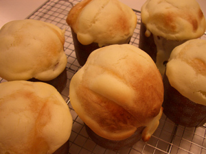 ふわふわのパンの中身は、りんごとレーズンを優しく甘く煮たもの。