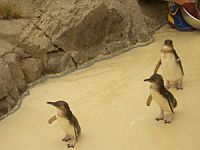 次はボクたちの番~♪(全員陸に上がってくるフェアリーペンギン)