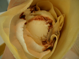 私はマリオンクレープ、チョコ生クリームにアイスをトッピング。