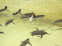まだかなまだかなまだかな。(全員プールの中で旋回して泳ぐフェアリーペンギン)