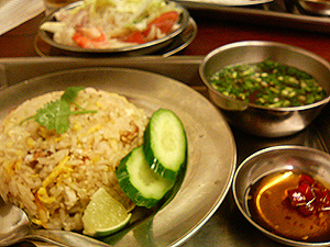 彼はカオマンガイ、私はタイ風チャーハンを豚肉で、春雨サラダをシェアして帰りました。