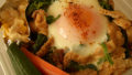 醤油で和えたおかかをごはんの上に乗せ、海苔をカットしてタイル状に並べて。