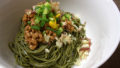春菊のおひたしには、海苔を半切り分小さく切って混ぜ込みました。