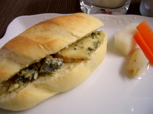 朝ごはんには、ブルーチーズをはさんで簡単サンドウィッチに。