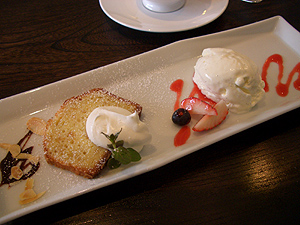 デザートは、マンゴーとアーモンドのパウンドケーキとバニラのジェラート。