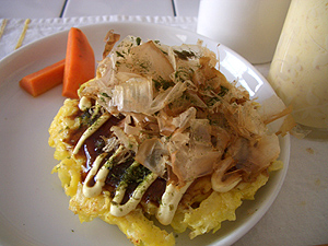 ん?と思い立って、薄力粉とか水とかも入れて、お好み焼き風にしてしまいました。