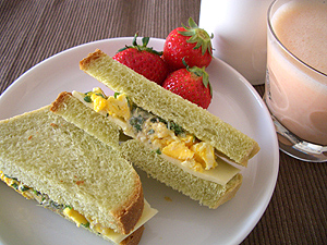 昨日焼いた青汁山形パンを使ってサンドウィッチ。
