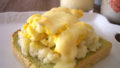 パンの上に何も塗らずにスライスチーズ、電子レンジでチンして作った炒り卵、