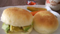 ミニフランスパンに、卵サラダをはさんだのと、